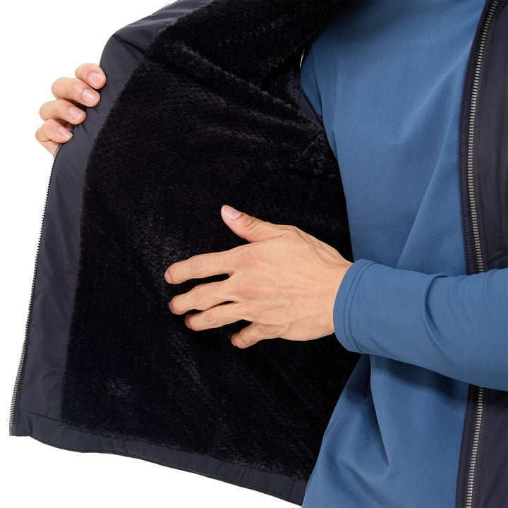 【Fleece-Back Warmth】Soft brushed lining adds steady core insulation without bulk for hiking, trekking, fishing, travel and camping in cool, breezy conditions.
