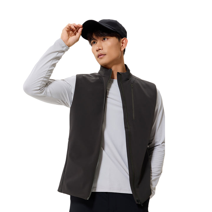 Men’s Softshell Vest – Stand-Up Collar, Articulated Fit, Zip Pockets
